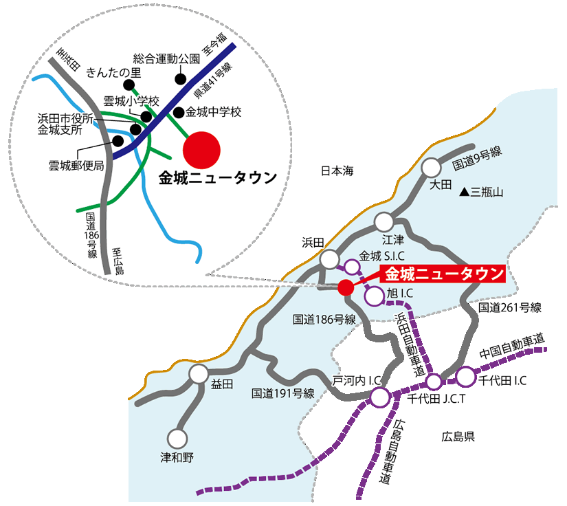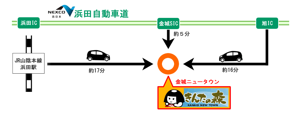 浜田駅から約17分、旭ICから約16分、金城スマートICから約5分の好立地!